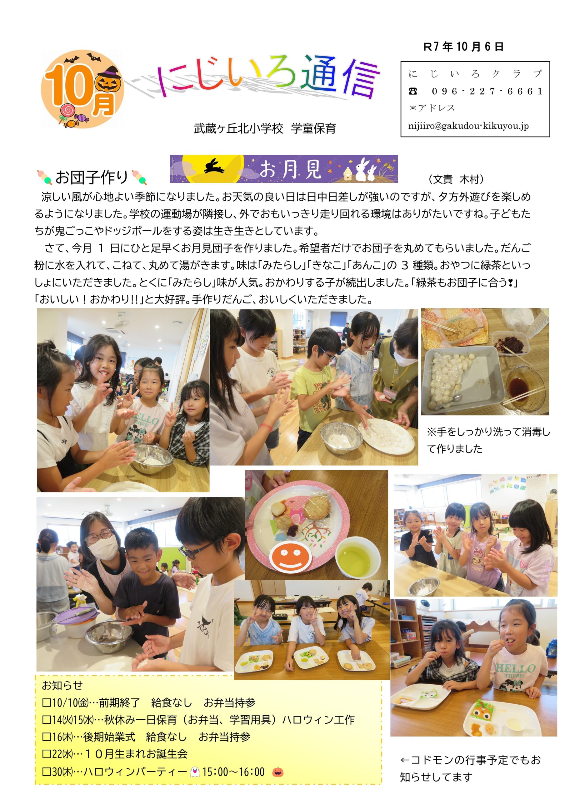 武蔵ヶ丘北小 にじいろクラブ 通信10月号