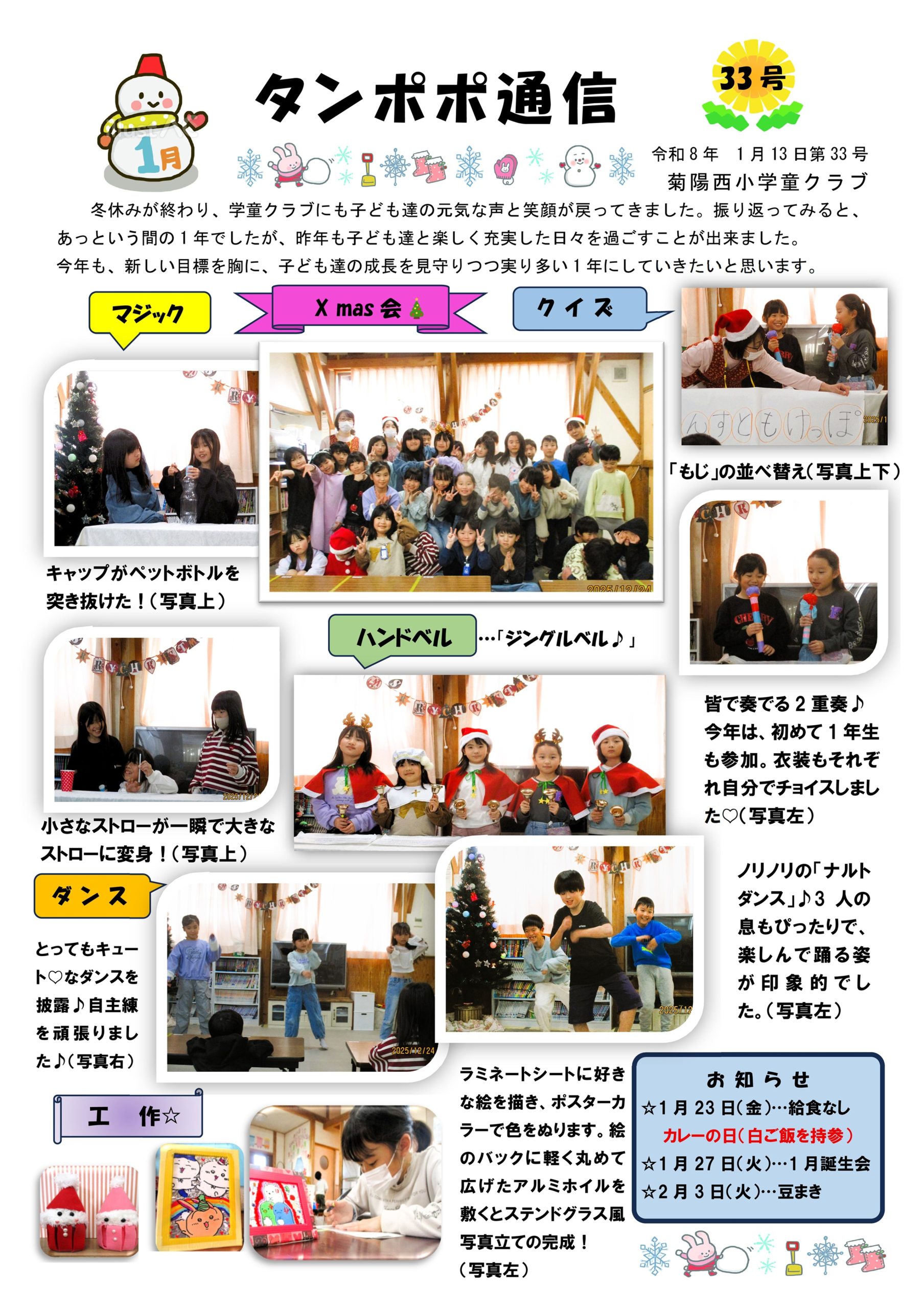 菊陽西小 タンポポ育成クラブ 通信1月号