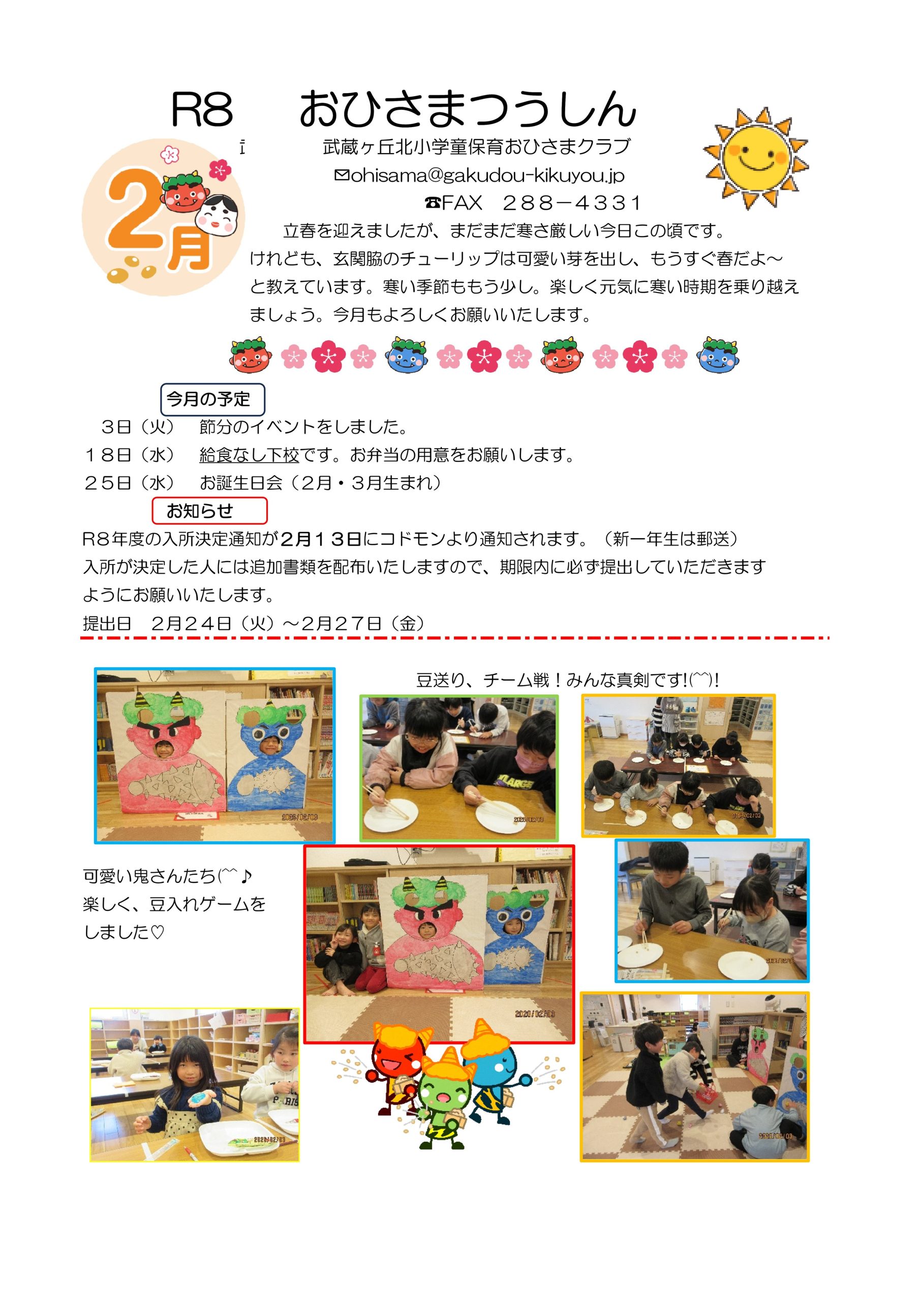 武蔵ヶ丘北小 おひさまクラブ 通信2月号